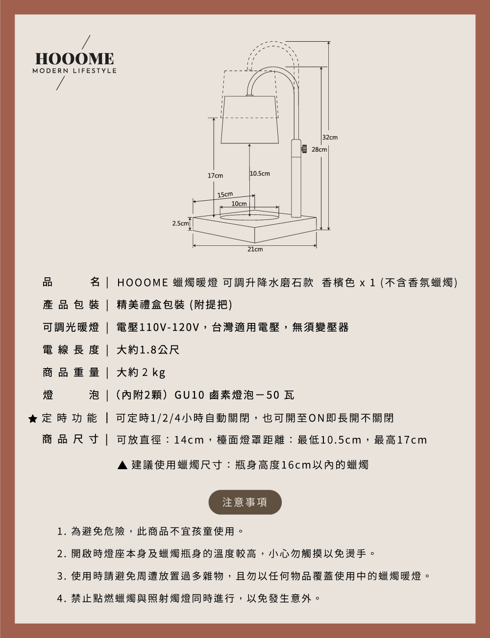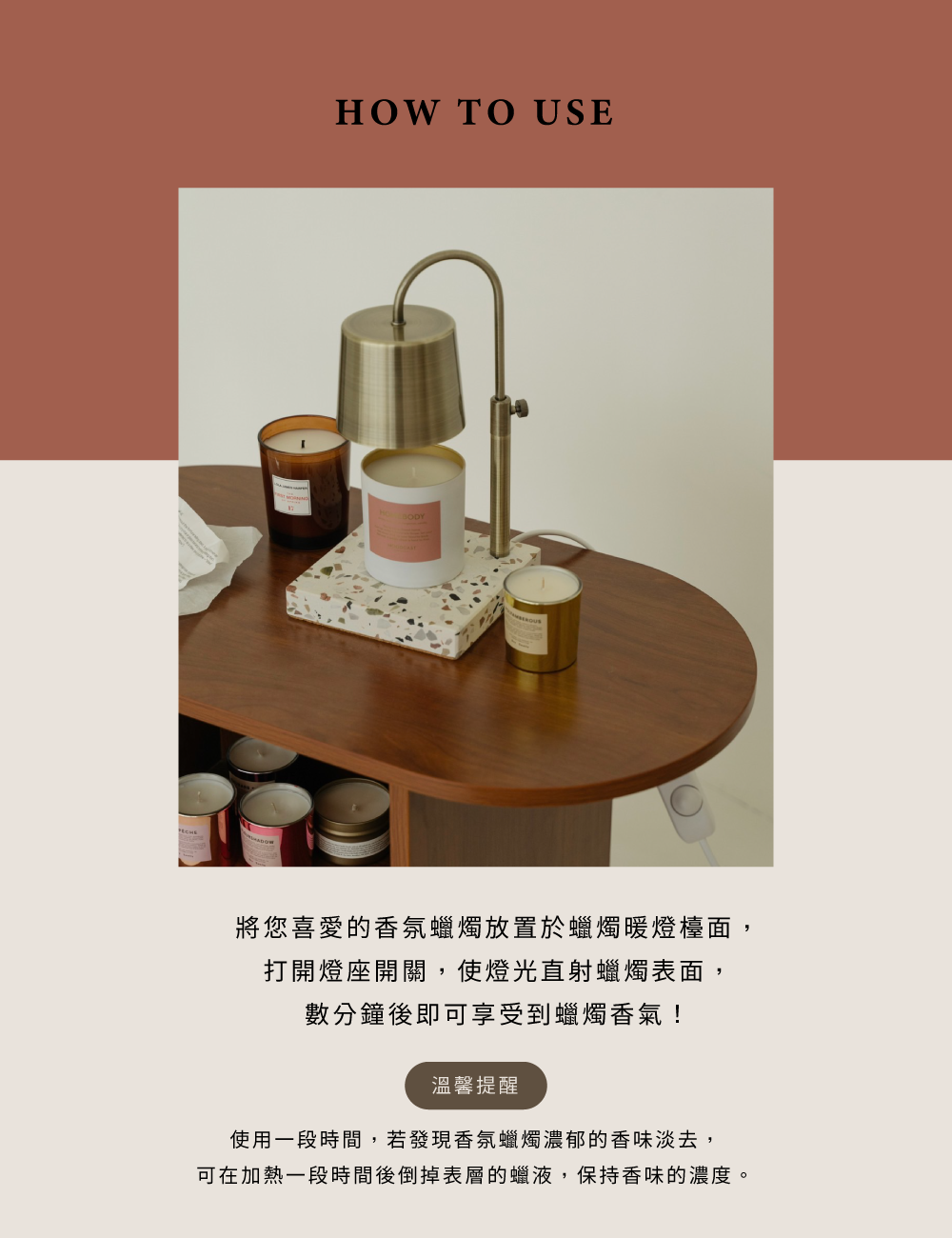 HOOOME 可調升降水磨石款蠟燭暖燈,可調整燈罩照射高度的設計,使用起來更加彈性、實用!