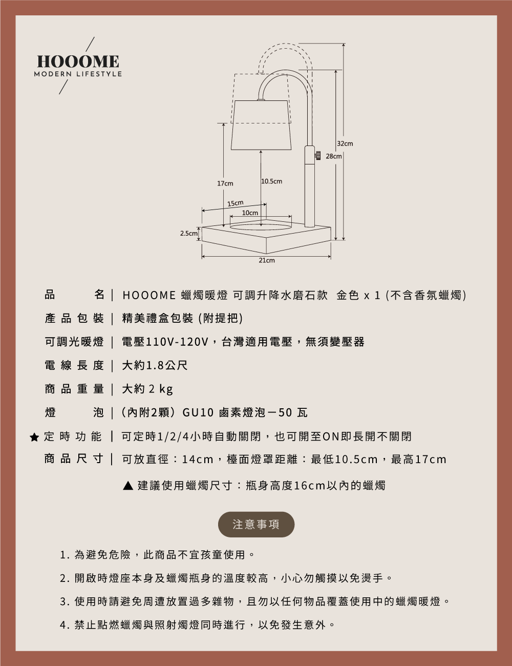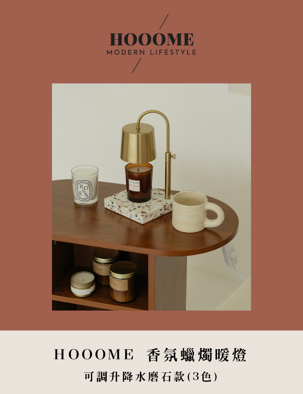 HOOOME 可調升降水磨石款蠟燭暖燈,可調整燈罩照射高度的設計,使用起來更加彈性、實用!