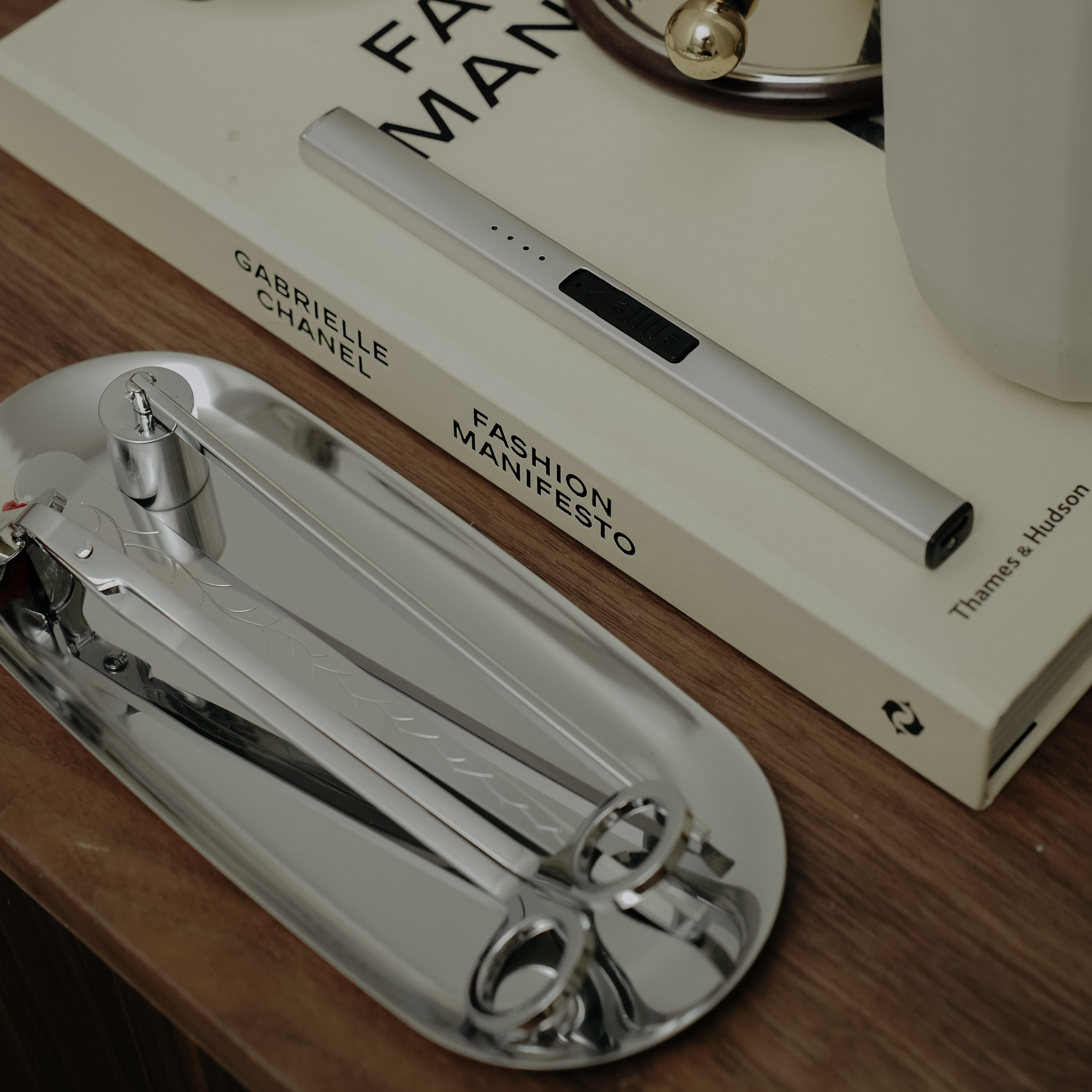 可放置燭芯剪、 滅燭罩、蠟燭鉤,除了讓蠟燭工具組能夠收納整齊之外,光是擺放著就讓空間瞬間升級優雅的質感。