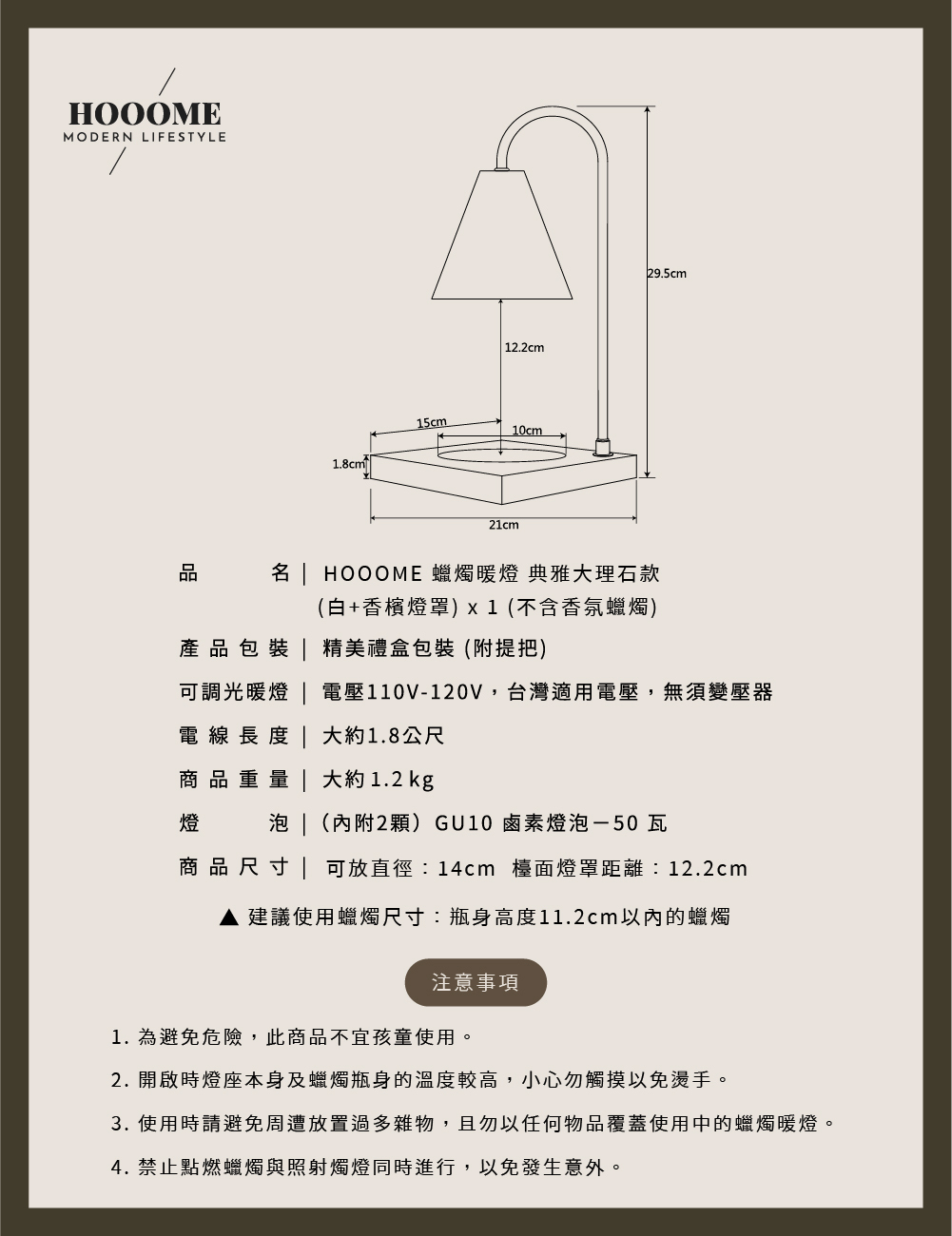 HOOOME 蠟燭暖燈採用典雅的大理石底座,散發高雅、獨特的質感,