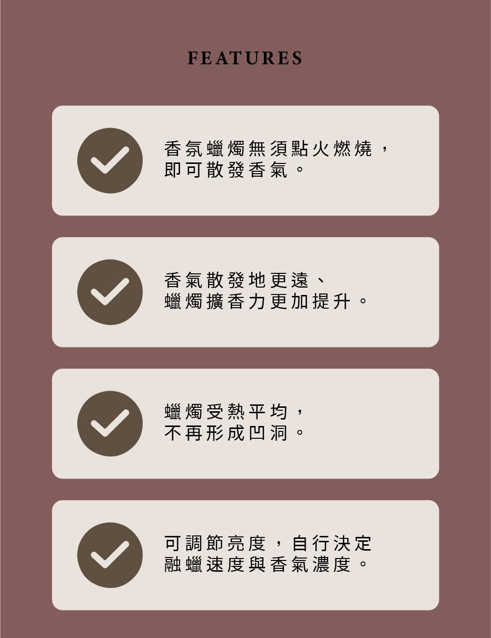 精選軟木材質的底座防滑貼皮,更顯出暖燈整體的設計美感!