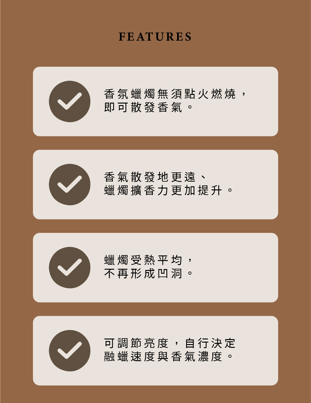 ✓ 可調節亮度,自行決定融蠟速度與香味濃淡