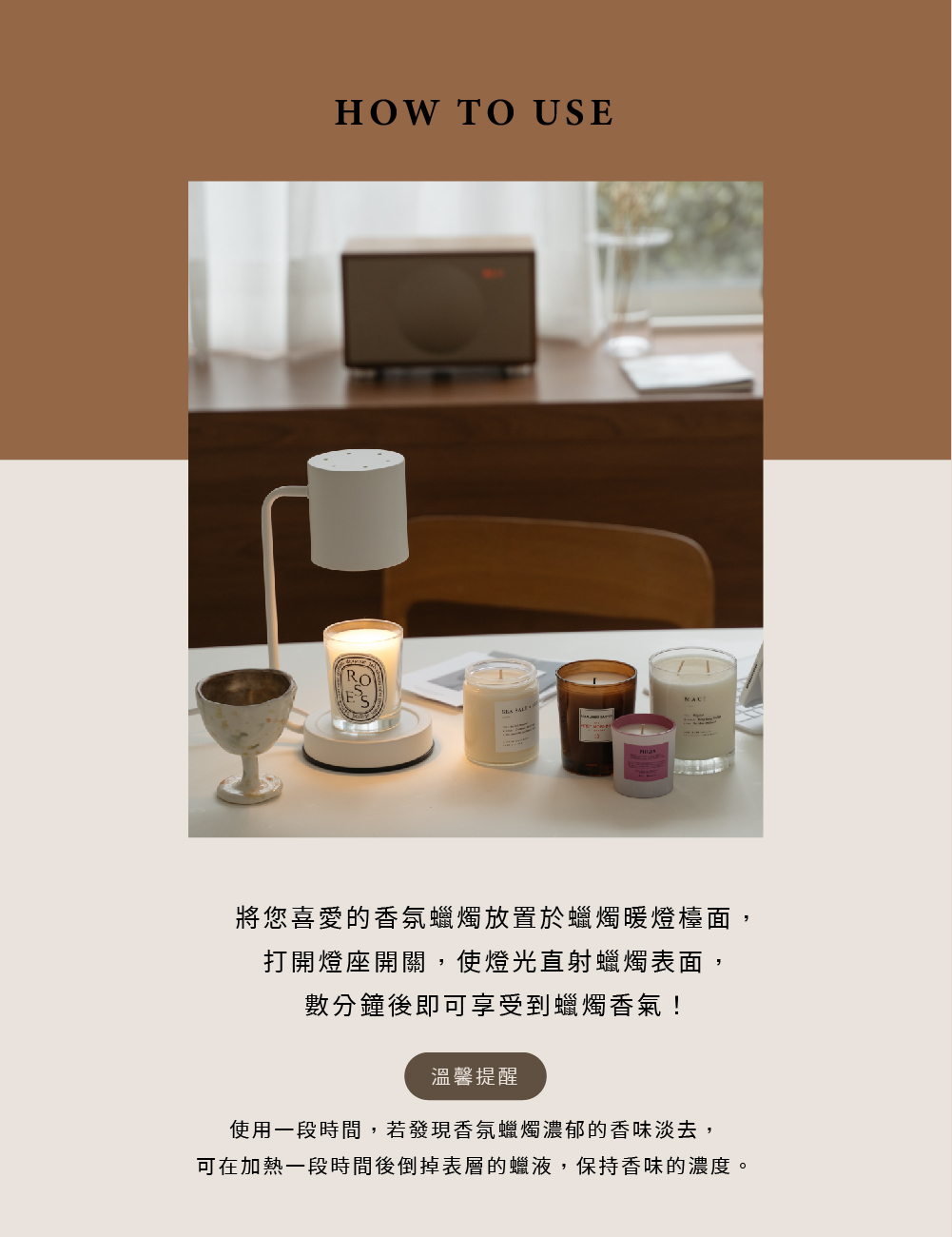 可以自由搭配您喜愛的香氛蠟燭使用,將空間營造出寧靜舒適的氛圍。