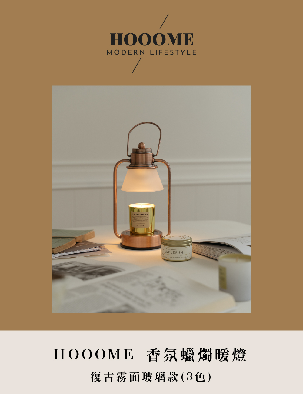 HOOOME 復古霧面玻璃款蠟燭暖燈,小巧的復古油燈造型