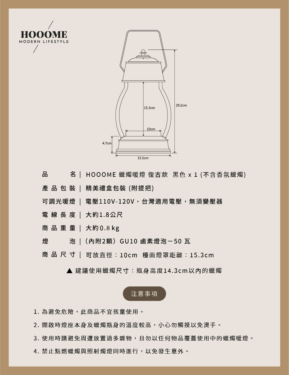 復古蠟燭暖燈,質感的黑色外觀